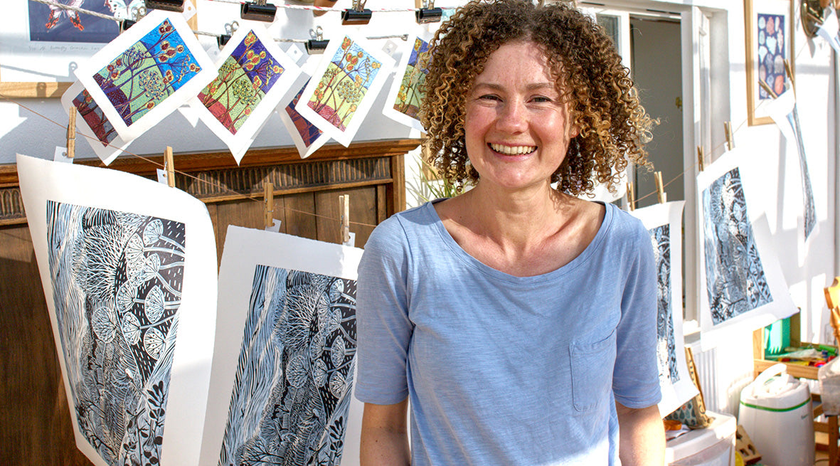 I create textiles and prints to capture a sense of place and invite an immersion into the wild beauty of West Cornwall’s landscape, flora and fauna; with its hidden woodlands, sweeping curves of moorland and coastlines where the Atlantic Ocean meets the skies.