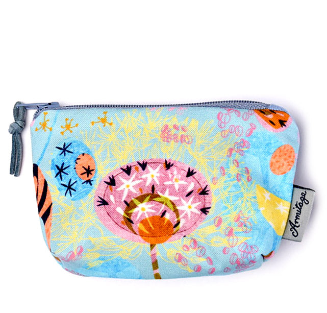 The beautiful Alium Dawn purse is part of the Alium collection, it features imagery of flora and fauna with fascinating hidden narratives. Studies of sculptural and architectural Alium flowers, which are part of the onion family; are layered with drawings of plantain, purported for its medicinal and culinary properties; and Equisetum or ‘horsetail’, which can be described as living fossil having existed for over 100 million years.