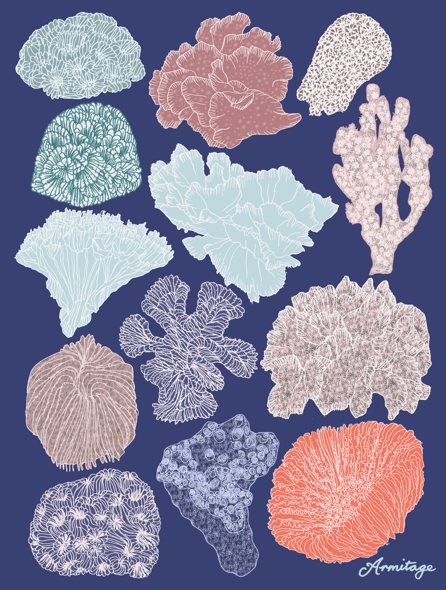 The exquisite Isla's Coral features my illustrations of Corals.