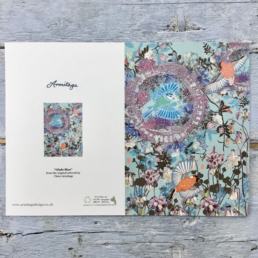 The exquisite Glade Blue greetings cards feature my delicate illustrations of wild flowers and British garden birds. These greetings cards are part of the Cloud Bloom collection, which evokes hazy glimpses of cloud through verdant flora and fauna and the sound of birdsong over a waterlily pool…
