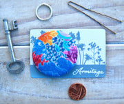 The exquisite Isla silk covered brooch features Claire's illustrations of Corals, seaweed and garden flowers.