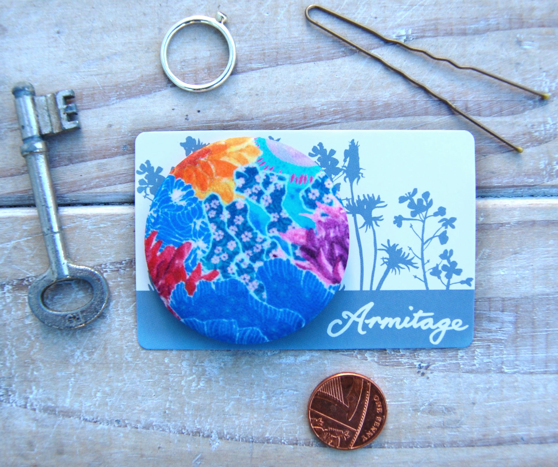 This handmade brooch would add a splash of colour and style to compliment your wardrobe. It comes presented on a pretty presentation card and would make an ideal gift.