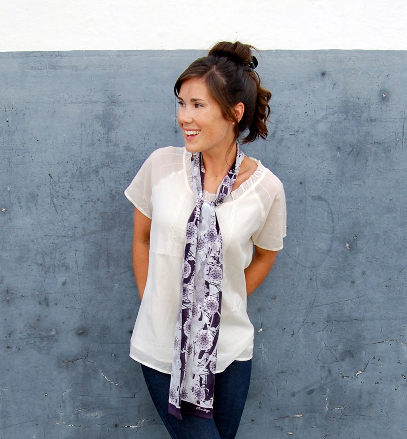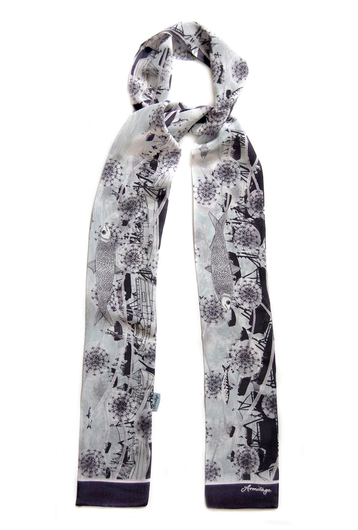 This beautiful silk scarf is part of the Sea Garden collection, which is inspired by Claire Armitage's sketchbook drawings and illustrations of the subtropical gardens and fishing harbour near to her studio in Cornwall.