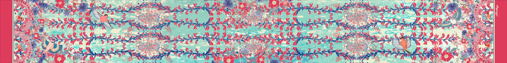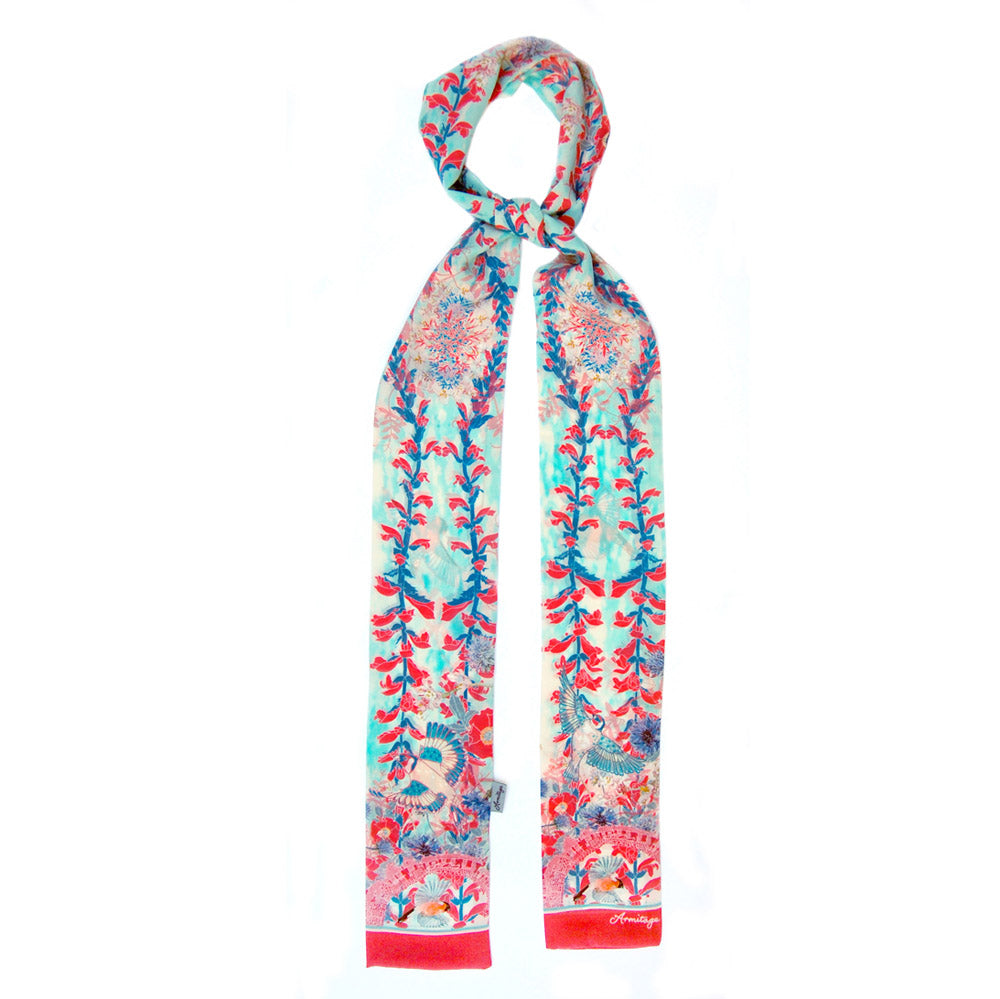 This beautiful silk scarf is part of the Cloud Bloom collection, which evokes hazy glimpses of cloud through verdant flora and fauna and the sound of birdsong over a waterlily pool…