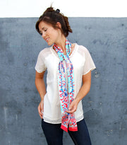 This luxurious handmade silk scarf makes an ideal gift, or would add a touch of elegance and style to compliment your wardrobe. It measures 17 cm by 180 cm and is best hand washed.
