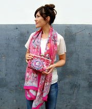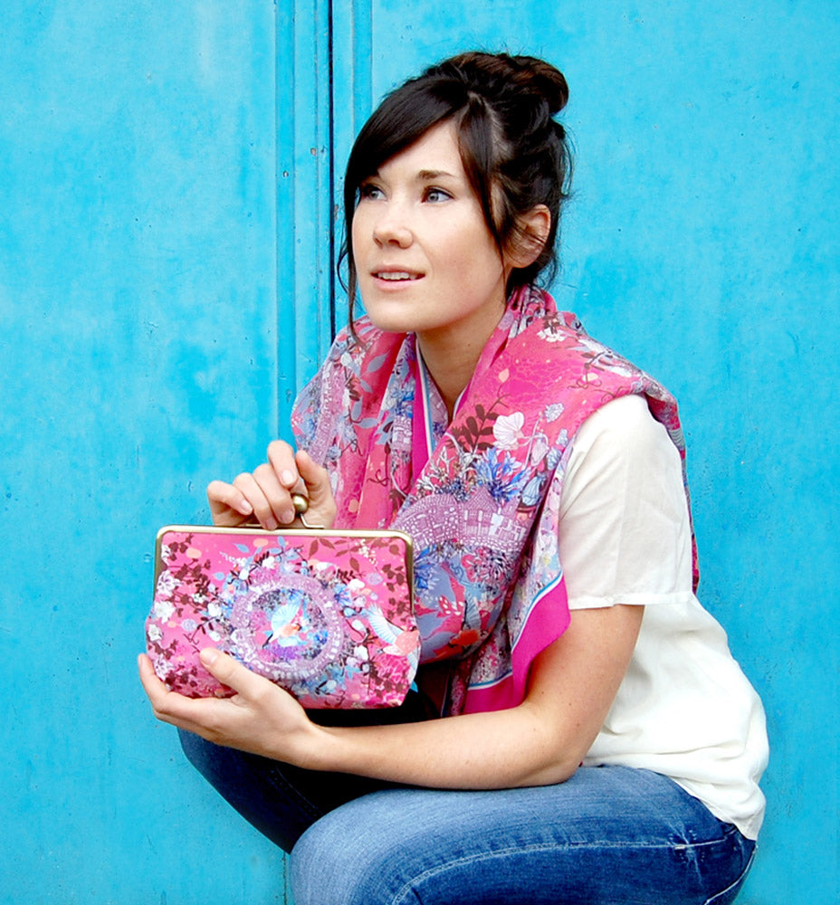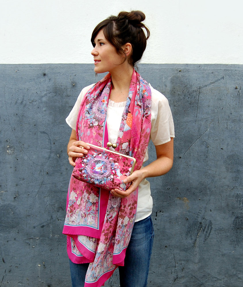 This beautiful silk clutch bag is part of the Cloud Bloom collection, which evokes hazy glimpses of cloud through verdant flora and fauna and the sound of birdsong over a waterlily pool…