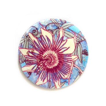 This silk covered brooch is part of the Moon Tree collection, it is an immersion into winter woodlands, rich in narrative and metaphor.  Forests are the lungs for our planet, and in a way the lungs for our soul, and wellbeing. This collection of silk scarves, bags, purses and limited edition prints takes whimsical inspiration from a 17th century writer who hypothesised that swallows fly to the moon to hibernate, each print layers my illustrations of the moon, swallows and winter woodlands.