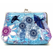 The exquisite Passion Blue print is a vibrant shade of sky blue, it features my illustrations of passionflowers, swallows and woodland trees.