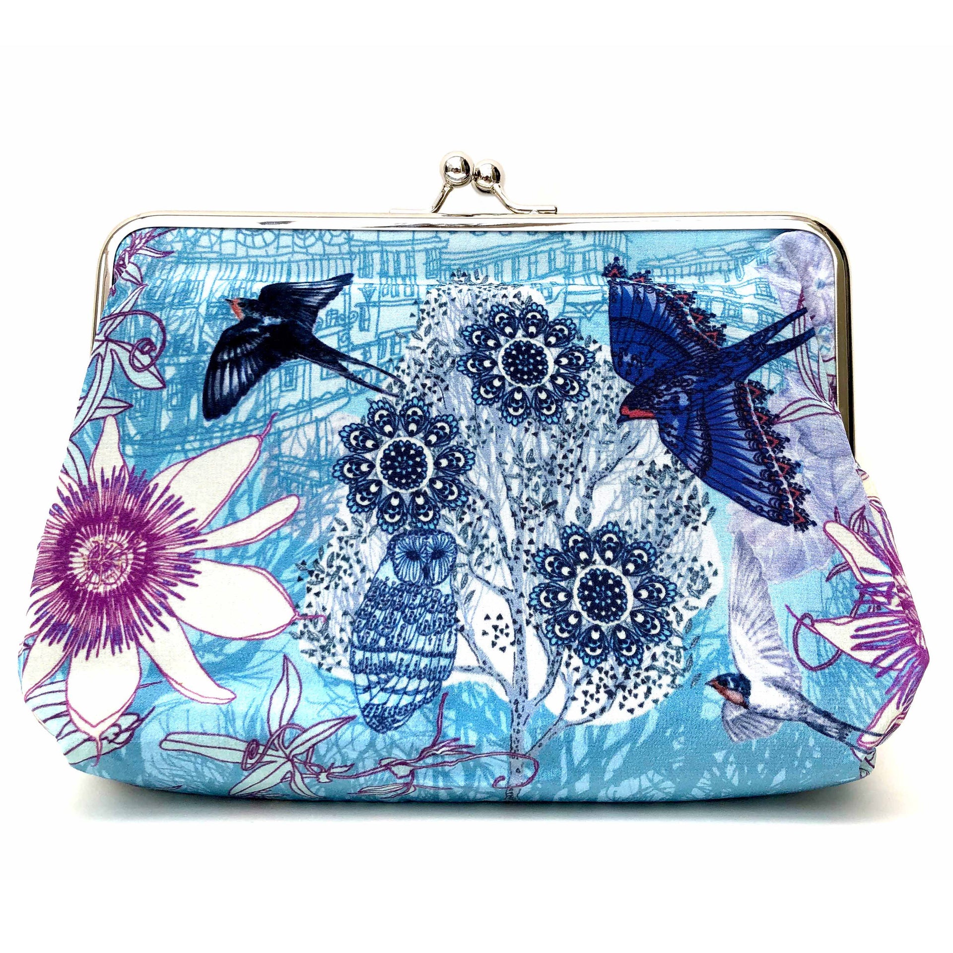 This silk clutch bag is part of the Moon Tree collection, it is an immersion into winter woodlands, rich in narrative and metaphor. Forests are the lungs for our planet, and in a way the lungs for our soul, and wellbeing. This collection of silk scarves, bags, purses and limited edition prints takes whimsical inspiration from a 17th century writer who hypothesised that swallows fly to the moon to hibernate, each print layers my illustrations of the moon, swallows and winter woodlands.