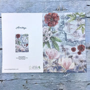 My Giclee printed greetings cards feature details from my textile collection illustrations. They are printed in Cornwall onto 100% recycled paper. Each card measures 12.5cm by 18cm and comes presented in a compostable protective clear sleeve with an envelope.