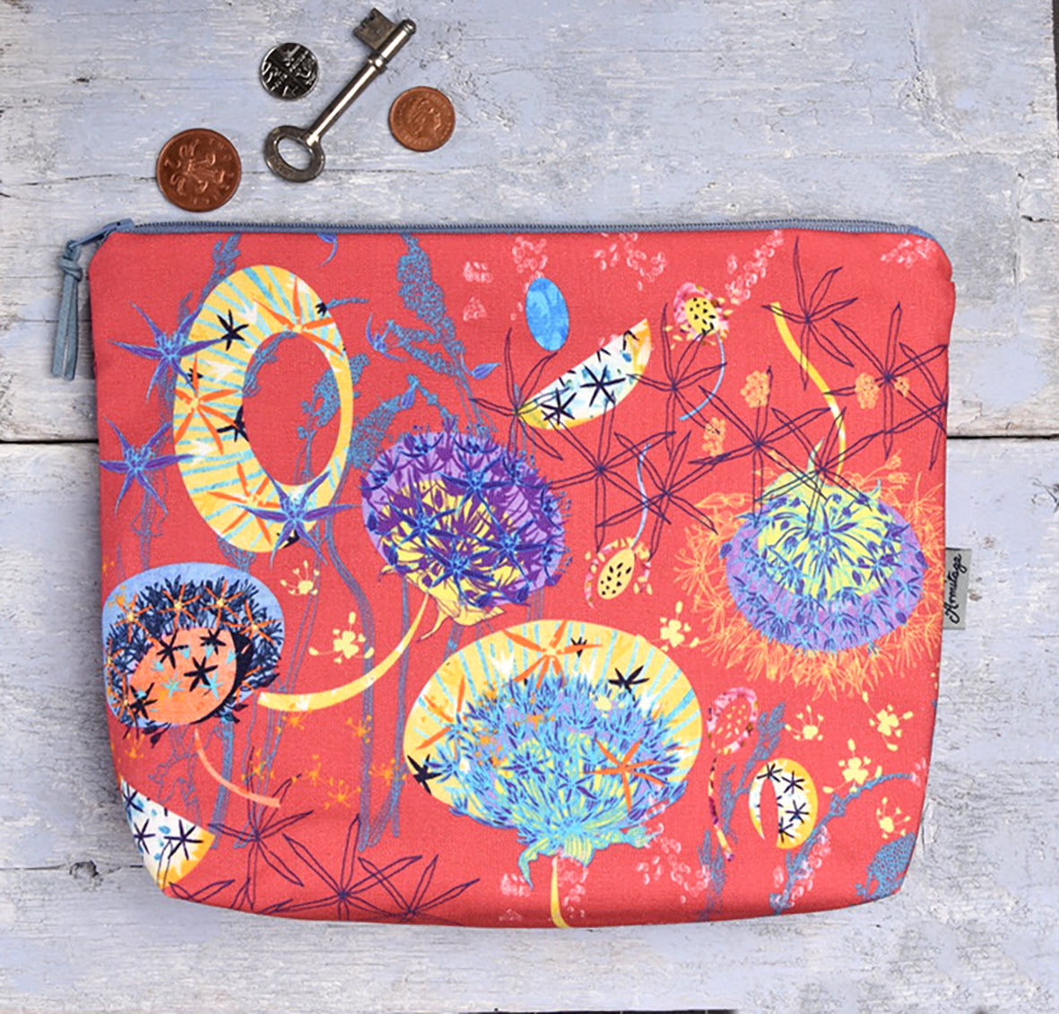 The beautiful Alium Crimson wash bags are handmade in Cornwall. They are part of the Alium collection, the design features imagery of flora and fauna with fascinating hidden narratives. Studies of sculptural and architectural Alium flowers, which are part of the onion family; are layered with drawings of plantain, purported for its medicinal and culinary properties; and Equisetum or ‘horsetail’, which can be described as living fossil having existed for over 100 million years.