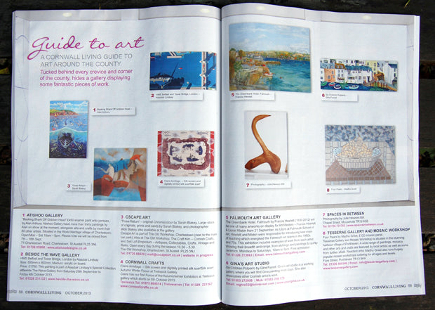 Cornwall Living Magazine featured Claire's Dandelion Harbour silk scarf in their October 2013 Guide to Art.