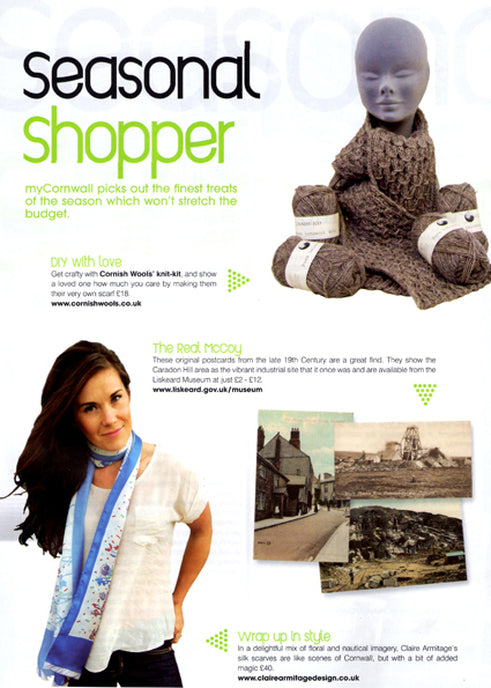 Claire's silk scarves were included in My Cornwall Magazine's February/March 2012 Seasonal Shopper Guide.
