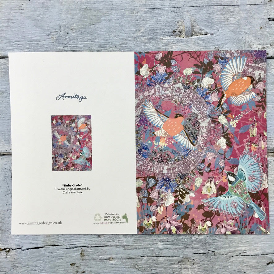The exquisite Ruby Glade greetings cards feature my delicate illustrations of wild flowers and British garden birds. These greetings cards are part of the Cloud Bloom collection, which evokes hazy glimpses of cloud through verdant flora and fauna and the sound of birdsong over a waterlily pool…